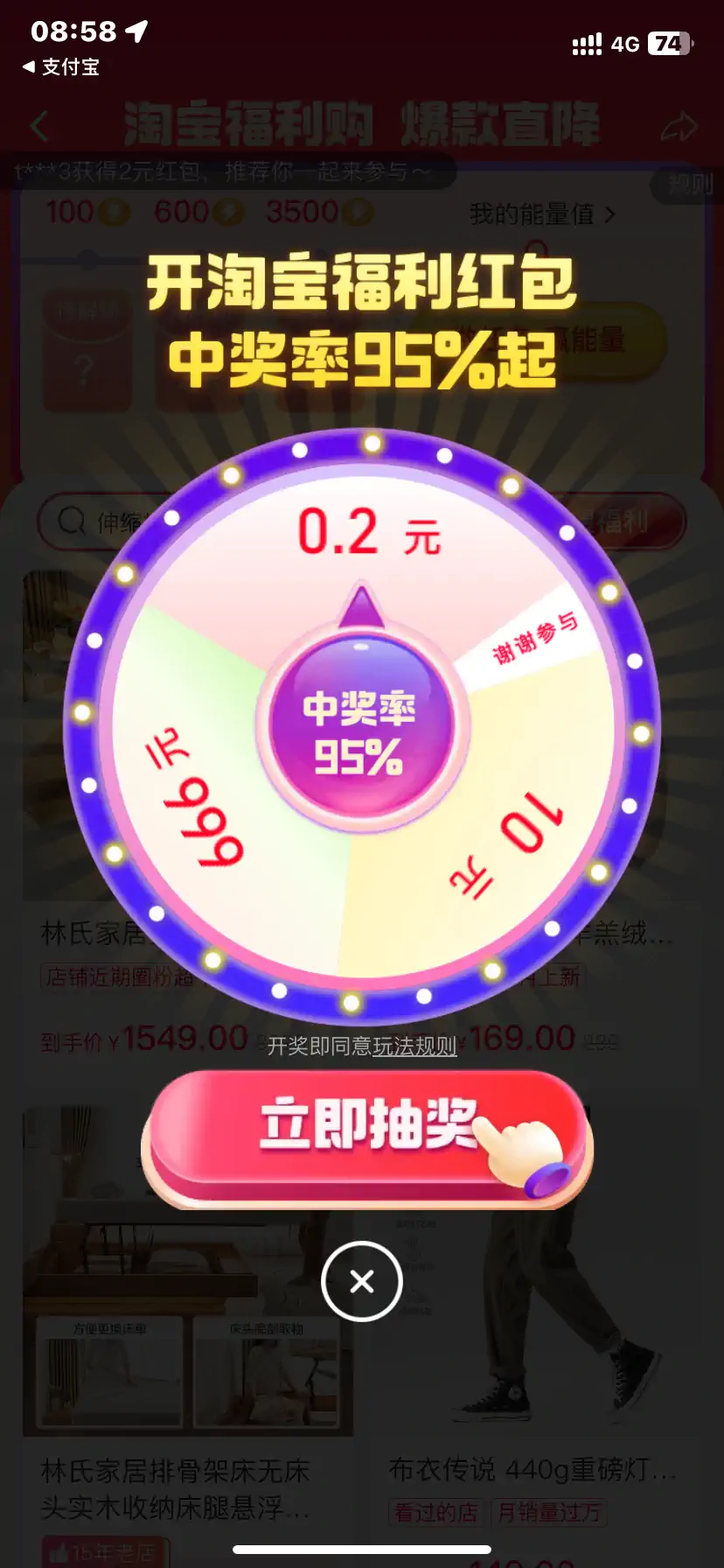 淘宝 支付宝跳转 淘宝福利购 活动弹窗 大转盘抽奖_2024 01 13