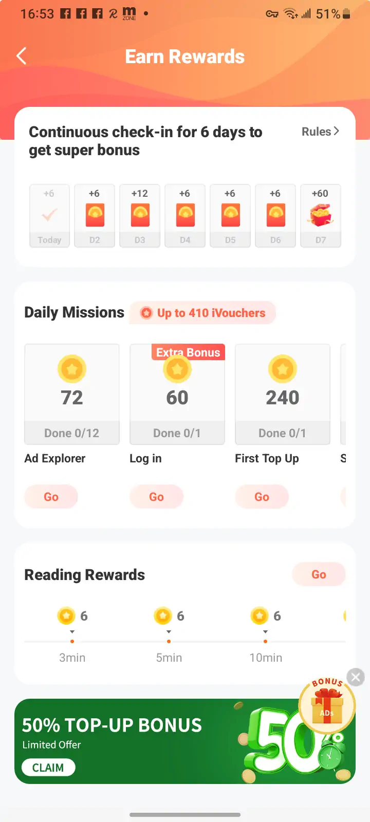 Hinovel 福利页 未签到 Tab页首屏_2024 07 31