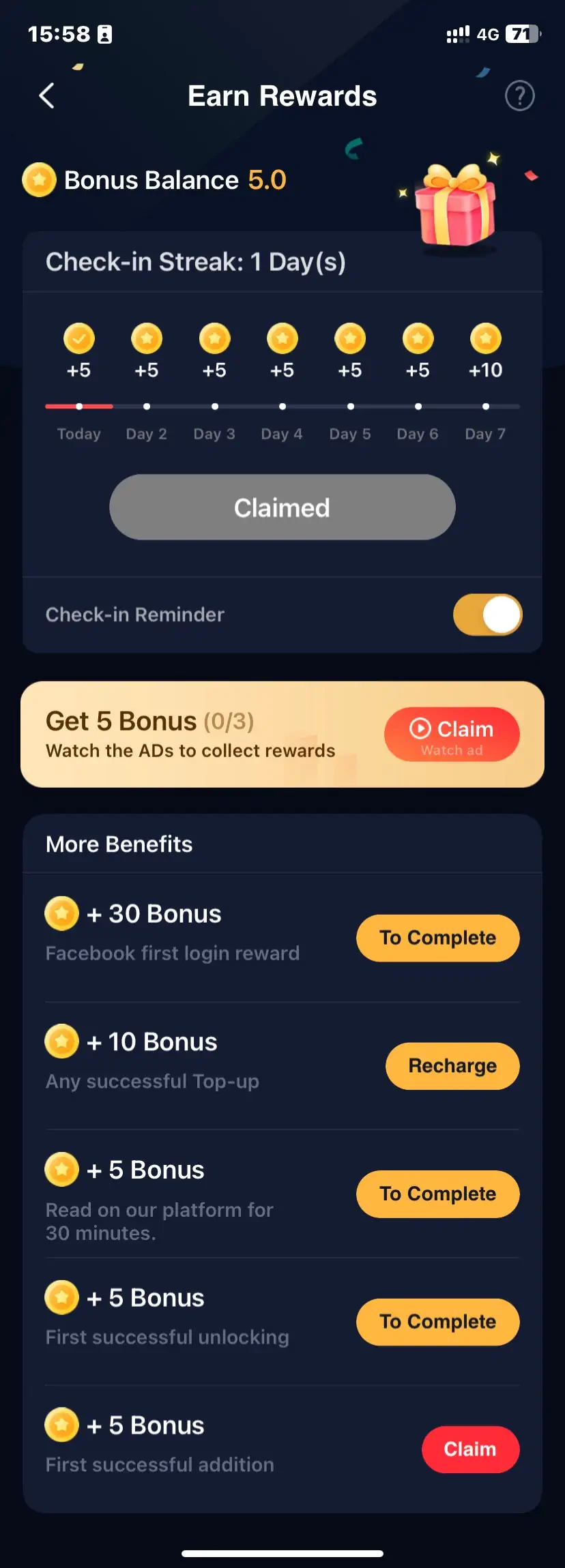 PickNovel 福利页 签到弹窗 底部引导横栏_2024 07 31